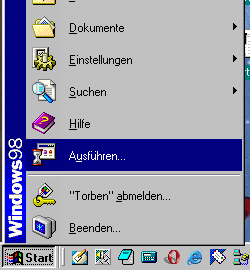 den Menüpunkt Ausführen wählen und anschliessend im neuen Fenster